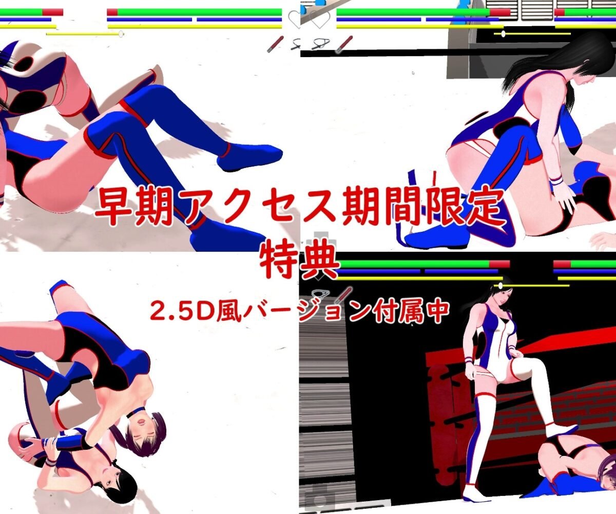 It reminds me of Rumble ○oses, a women’s pro wrestling ecchi fighting game that was released on consoles over a decade ago. The heart-shaped gauge next to the life bar fills up through submission holds, joint locks on downed opponents, spanking, and other humiliating acts, eventually unlocking various violation sequences once certain conditions are met. Deplete the life bar and you win… but it doesn’t end there — you can continue performing submission holds and violation acts on your downed, defenseless opponent with no time limit.