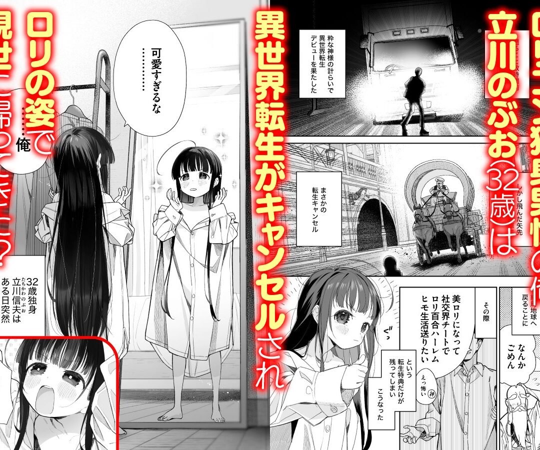 A 32-year-old man with a lolification wish ends up only lolified as a TS girl and sent back due to a cancellation of his otherworldly rebirth. At first, he tries to masturbate while thinking about being TS like everyone else, but it’s just ticklish and painful since it’s still undeveloped. Then he enjoys his female life, and it’s so cute. His five senses have been feminized, and he enjoys fashion. No matter what he wears, it’s so cute. Lolita is the best, man.
