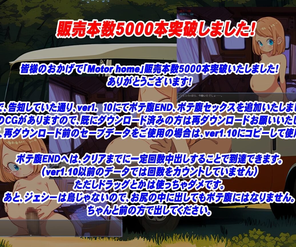 Motor home features distinctive anime-inspired CGs that present bold. Additionally, colorful visuals, coupled with a noticeable body size disparity that adds to its unique style. The art effectively underscores the narrative of a protagonist on the brink of carnal desires.