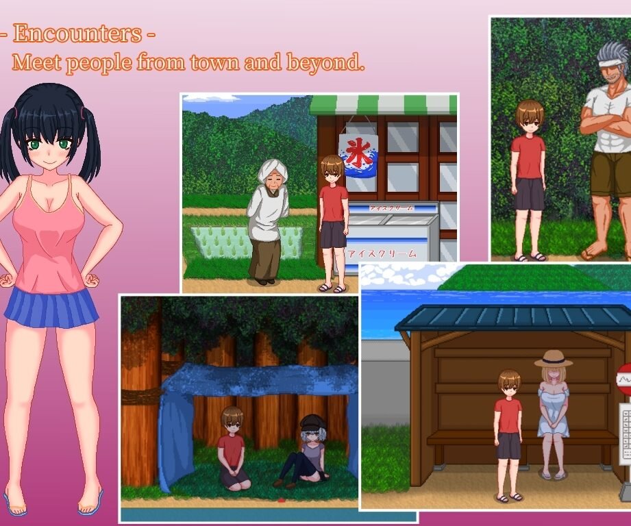 Countryside Life builds its story around a summer vacation with relatives in rural Japan. In essence, PictorCircus keeps the premise grounded in slice of life eroge territory. Specifically, you play a young boy exploring the countryside through daily routines and small quests. As a result, the setup feels instantly familiar, which works in the game’s favor.