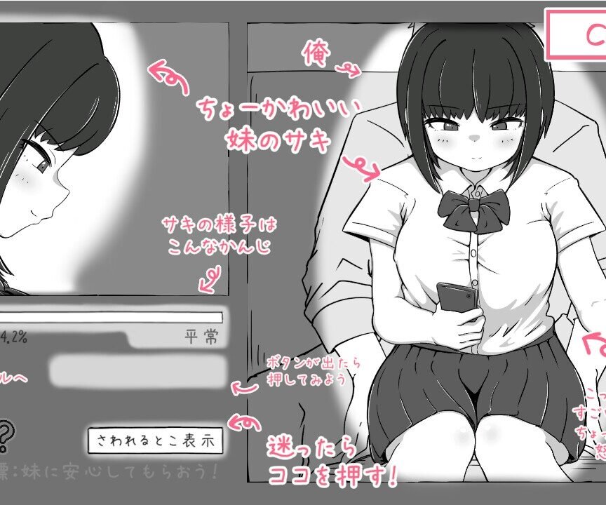 This incest game focuses on detailed visual feedback. The sister is depicted with a plump, curvaceous body. Still, her expressions change noticeably as skinship escalates across the three-part story. For example, every touch elicits a unique visual response from her.